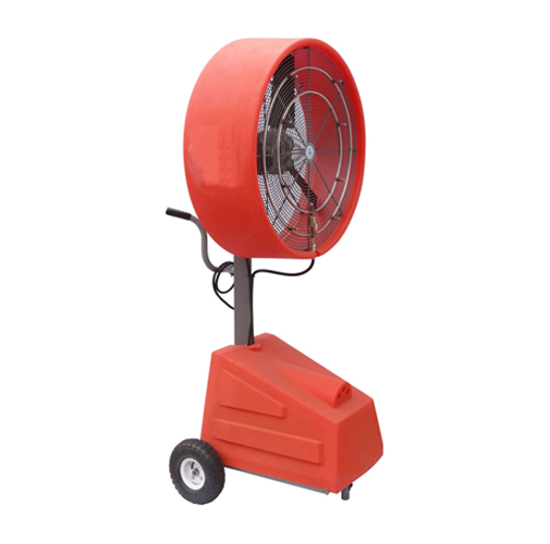The two most accepted mist applications are the misting line and the misting fan. The mist line is comprised of a series of misting nozzles in-line with one-another. This creates a curtain of mist which will cool the air. However a mist line relies on nature’s movement of air to cool the surrounding areas. A mist line is usually installed around a perimeter of a building or in an open (non-covered area). Mist lines will produce an ambient temperature drop of about 5-10 degrees. Mist lines work well in dry climates; they however are not as effective in humid climates. A Misting Fan utilizes “flash evaporative cooling”. By introducing a mist system into the front of a fan you are moving the mist (flash evaporation) over a larger more direct area, The air movement generated by the fan creates a wind chill which will lower temperatures by as much as 25 degrees. When trying to cool a humid environment the mist fan is much more effective than a mist line. SimplyCool specializes in the manufacturing of portable and mounted misting fans.